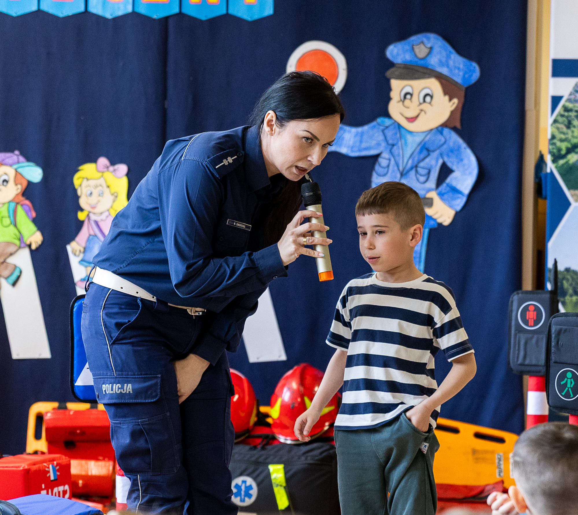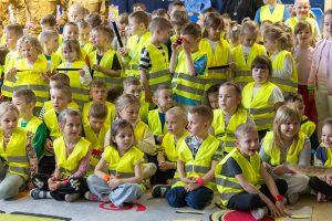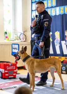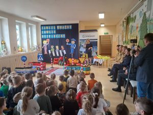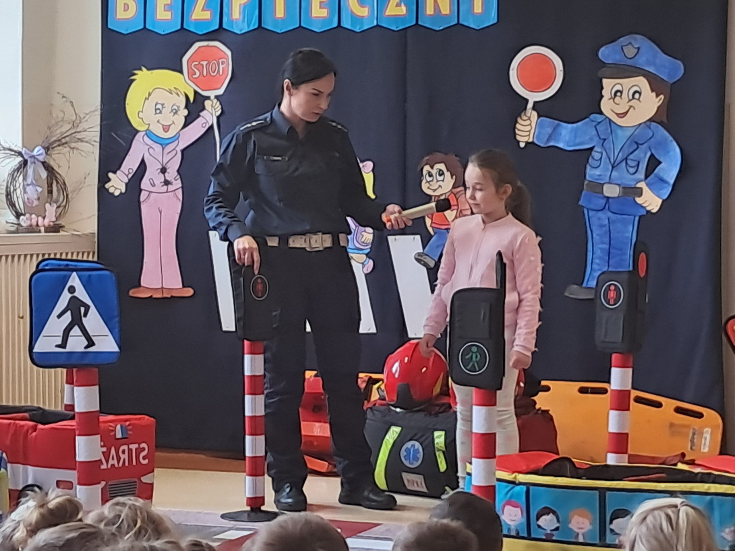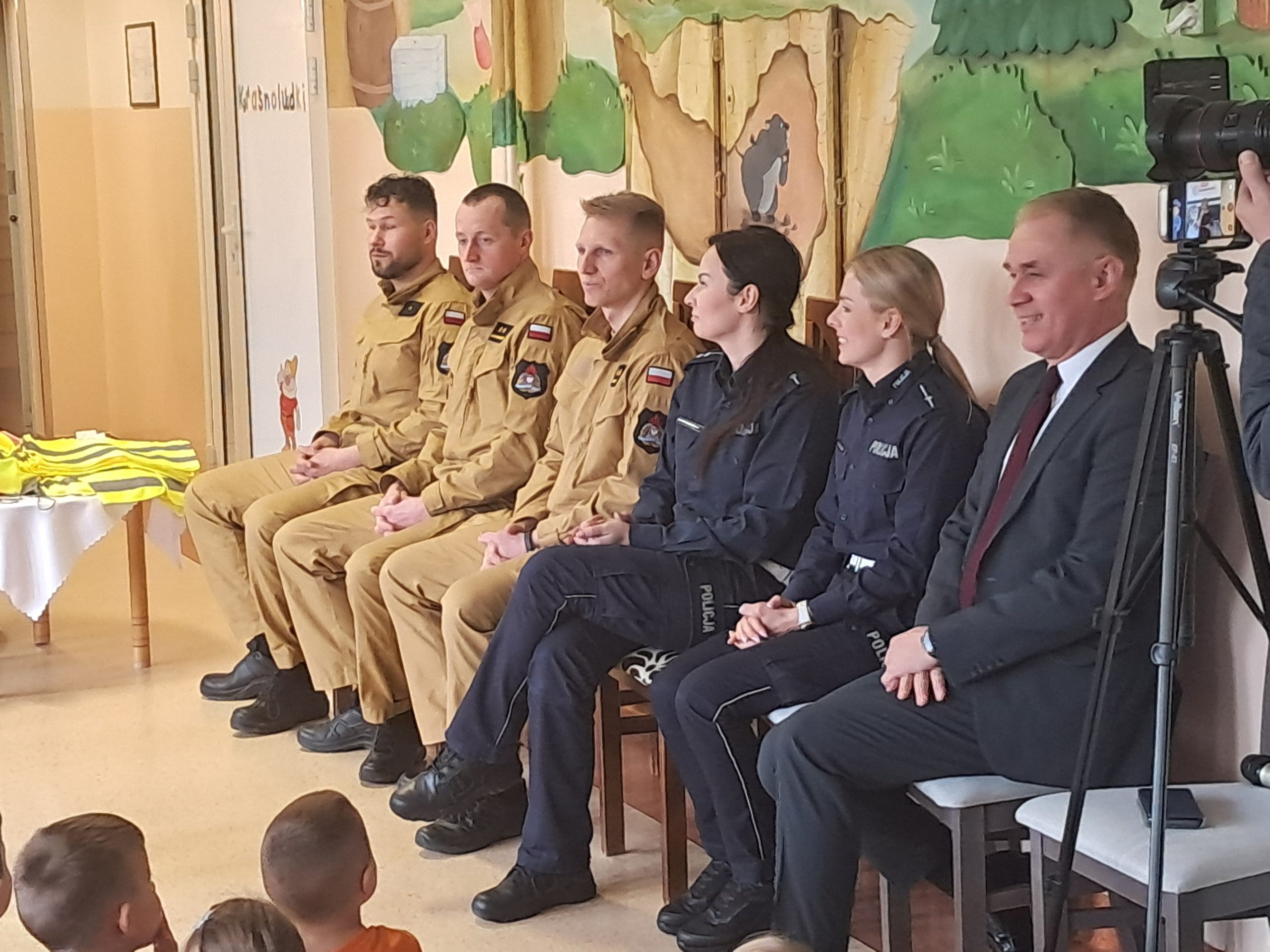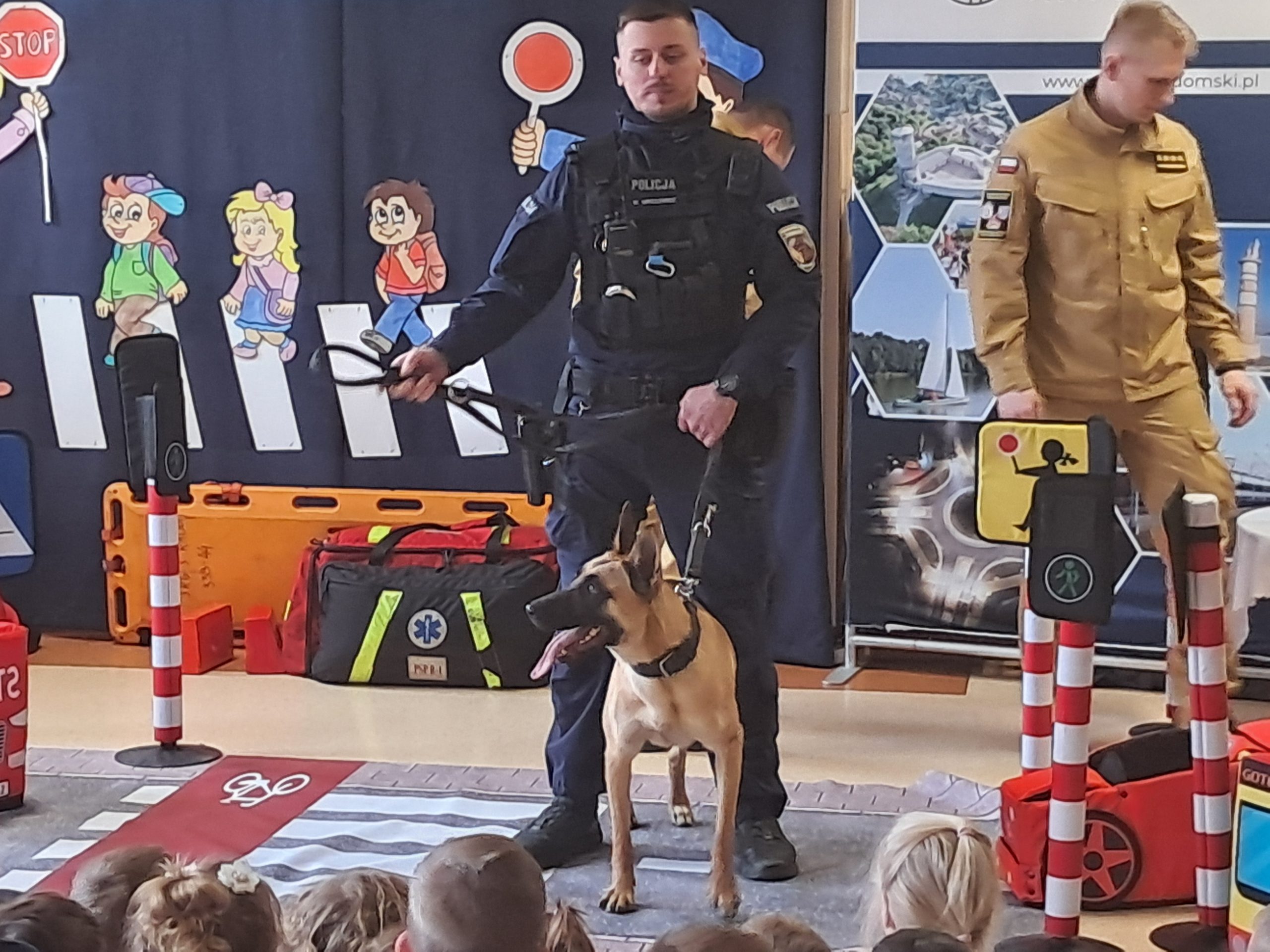 Przedstawiciele policji przeprowadzili prelekcje na temat bezpieczeństwa w ruchu drogowym. Dzieci mogły odgrywać różne role podczas symulacji na zorganizowanym miasteczku ruchu drogowego. Z kolei strażacy pokazali na czym polega pierwsza pomoc przedmedyczna. Jak korzystać z deski ratowniczej, jak rozmawiać z dyspozytorem i jak postępować w razie niebezpieczeństwa, na przykład w wyniku pożaru. W spotkaniu uczestniczył  czworonożny funkcjonariusz , pies Wachta wraz z przewodnikiem, reprezentując Komendę Miejską Policji w Radomiu. W przedszkolu  z najmłodszymi również spotkał się wójt gminy Kowala, Wiesław Pachniewski, który naszym przedszkolakom wręczał odblaskowe niespodzianki.