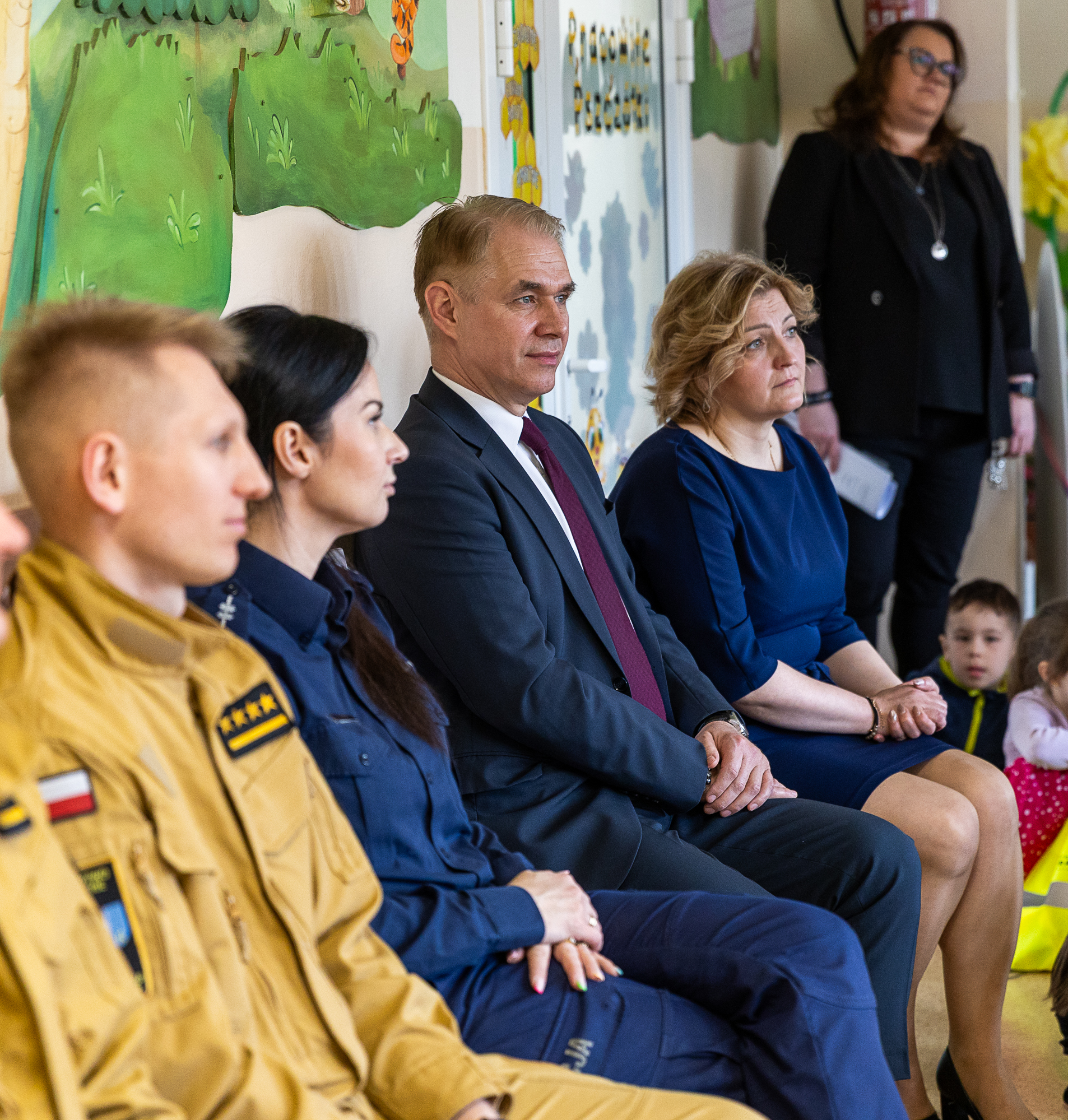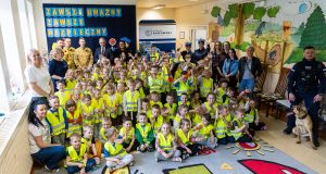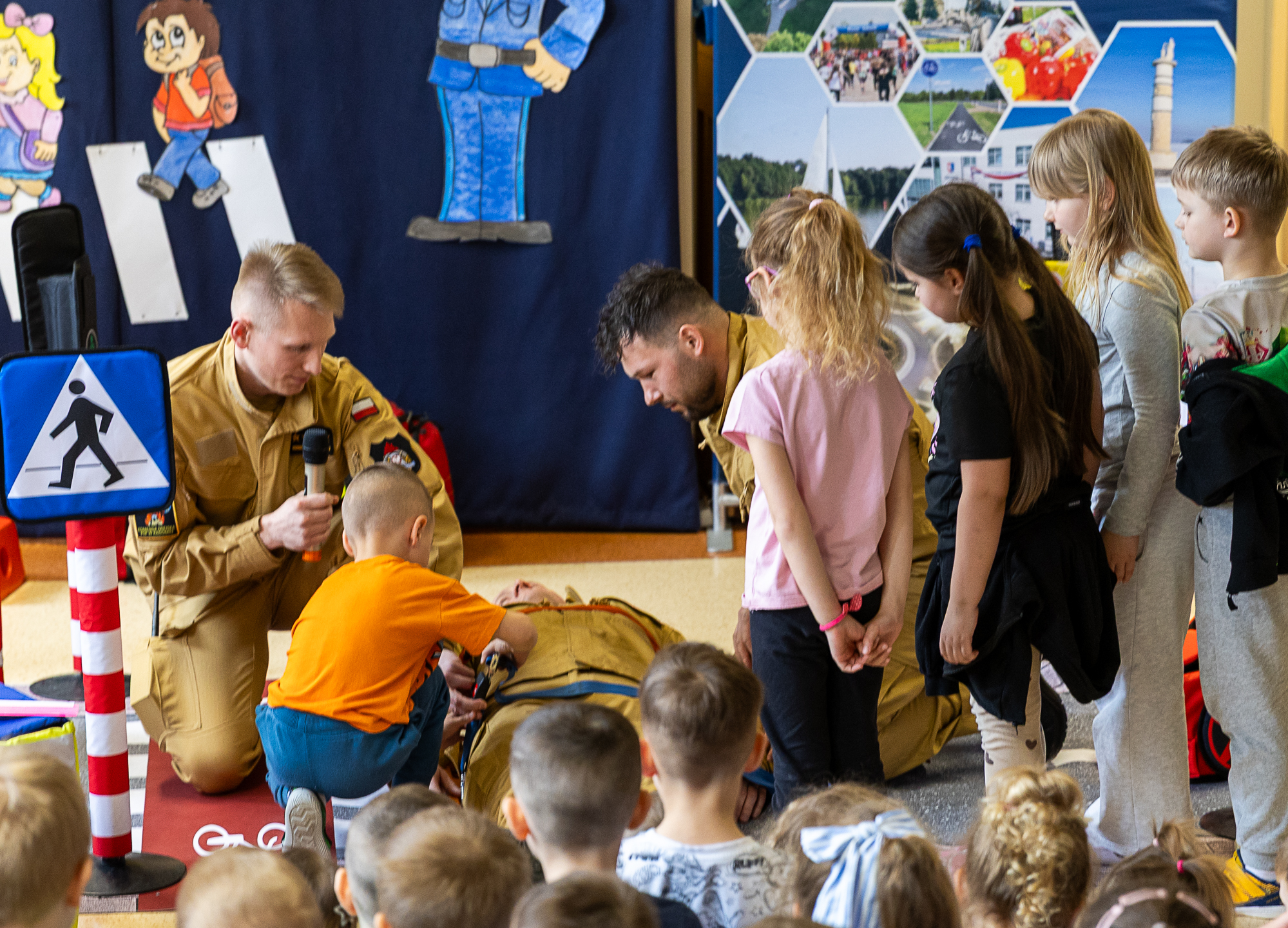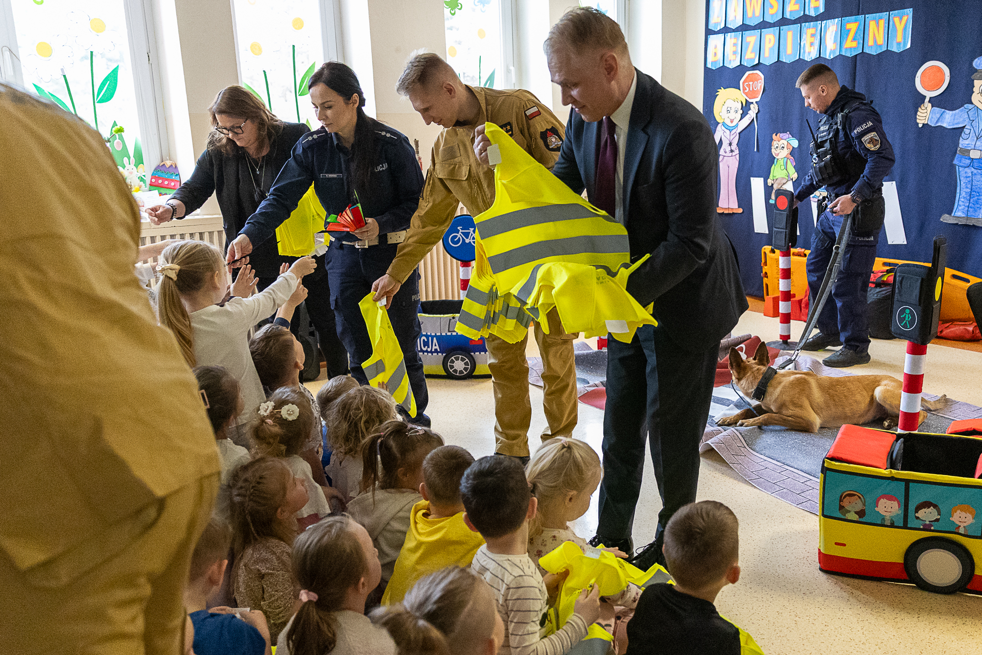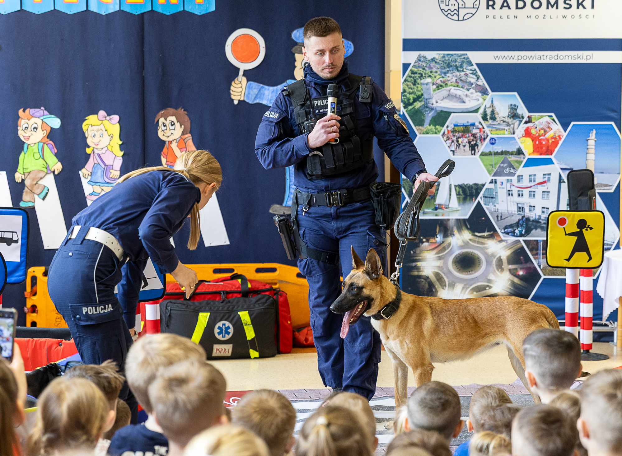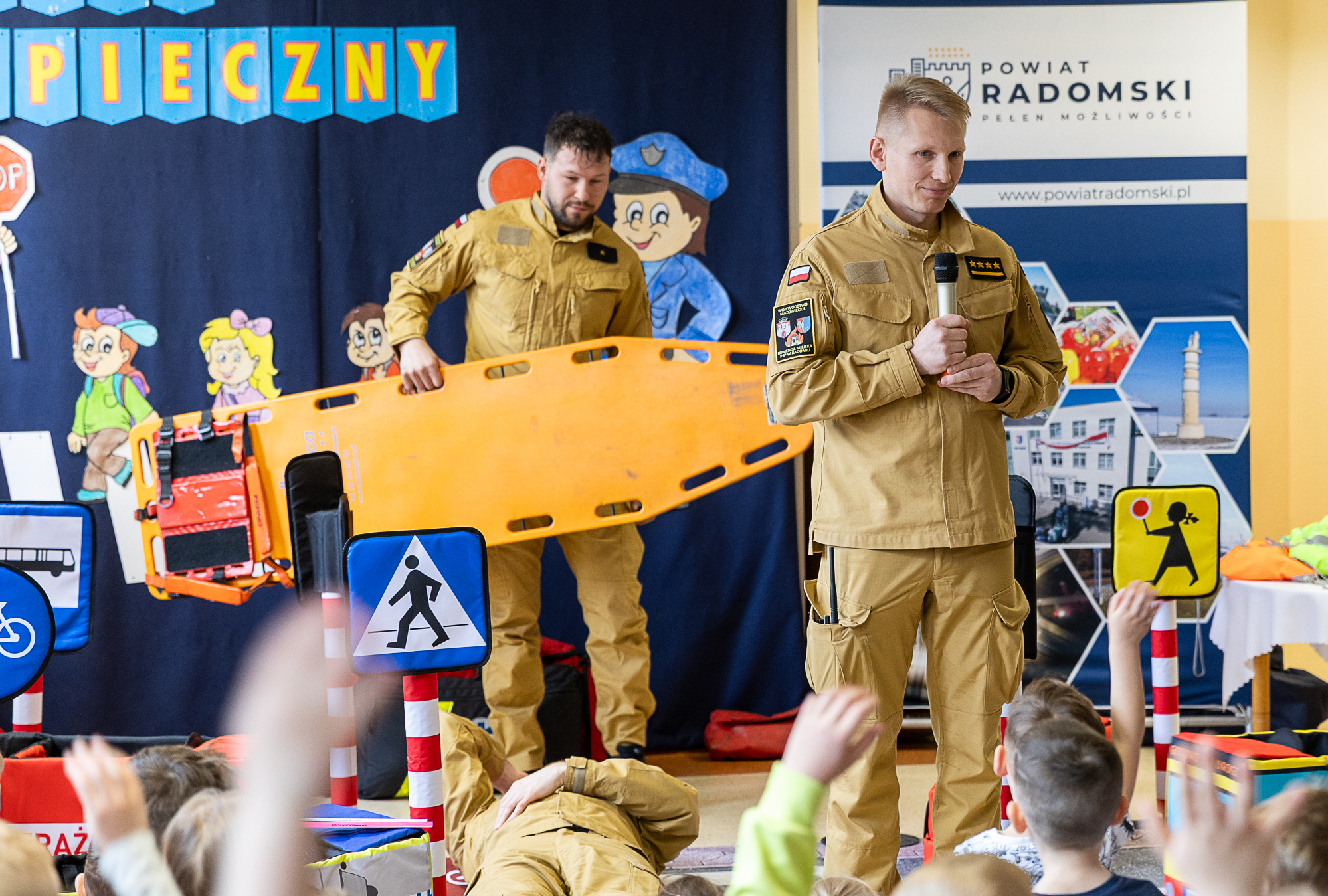 Przedstawiciele policji przeprowadzili prelekcje na temat bezpieczeństwa w ruchu drogowym. Dzieci mogły odgrywać różne role podczas symulacji na zorganizowanym miasteczku ruchu drogowego. Z kolei strażacy pokazali na czym polega pierwsza pomoc przedmedyczna. Jak korzystać z deski ratowniczej, jak rozmawiać z dyspozytorem i jak postępować w razie niebezpieczeństwa, na przykład w wyniku pożaru. W spotkaniu uczestniczył  czworonożny funkcjonariusz , pies Wachta wraz z przewodnikiem, reprezentując Komendę Miejską Policji w Radomiu. W przedszkolu  z najmłodszymi również spotkał się wójt gminy Kowala, Wiesław Pachniewski, który naszym przedszkolakom wręczał odblaskowe niespodzianki.