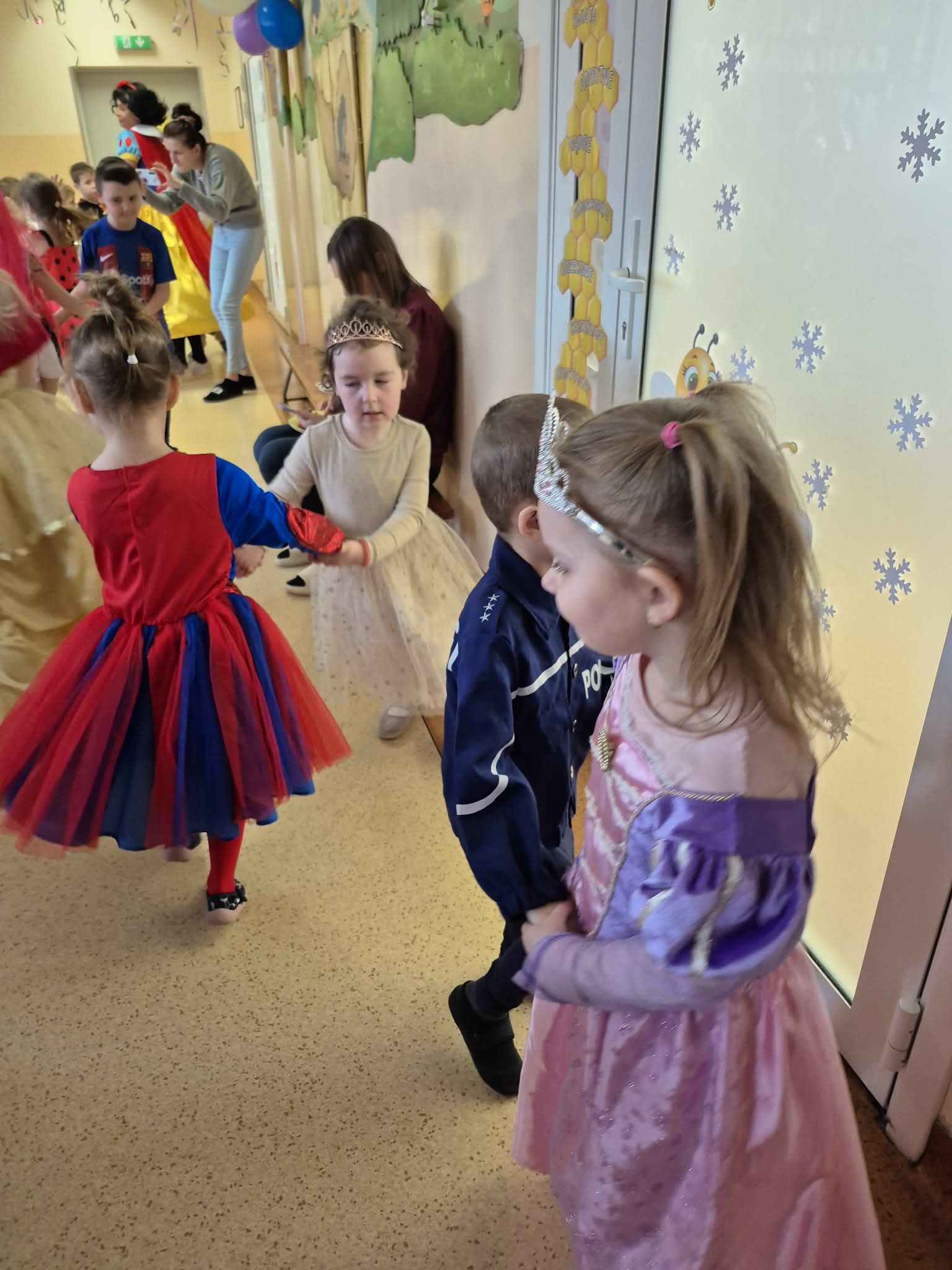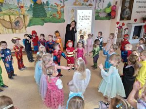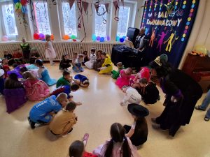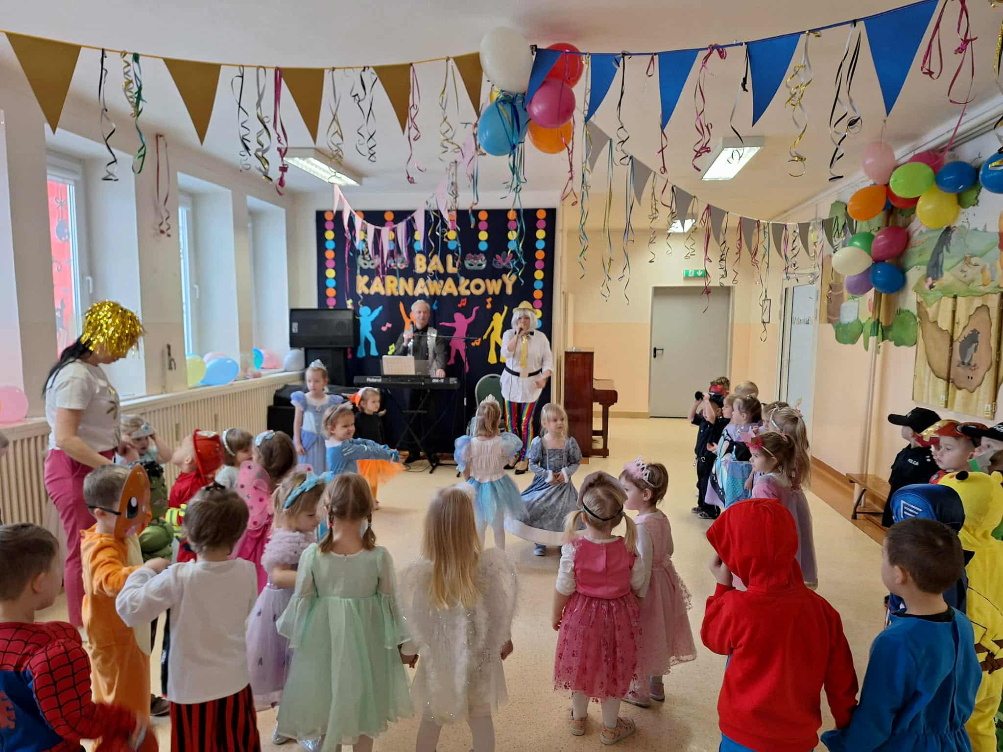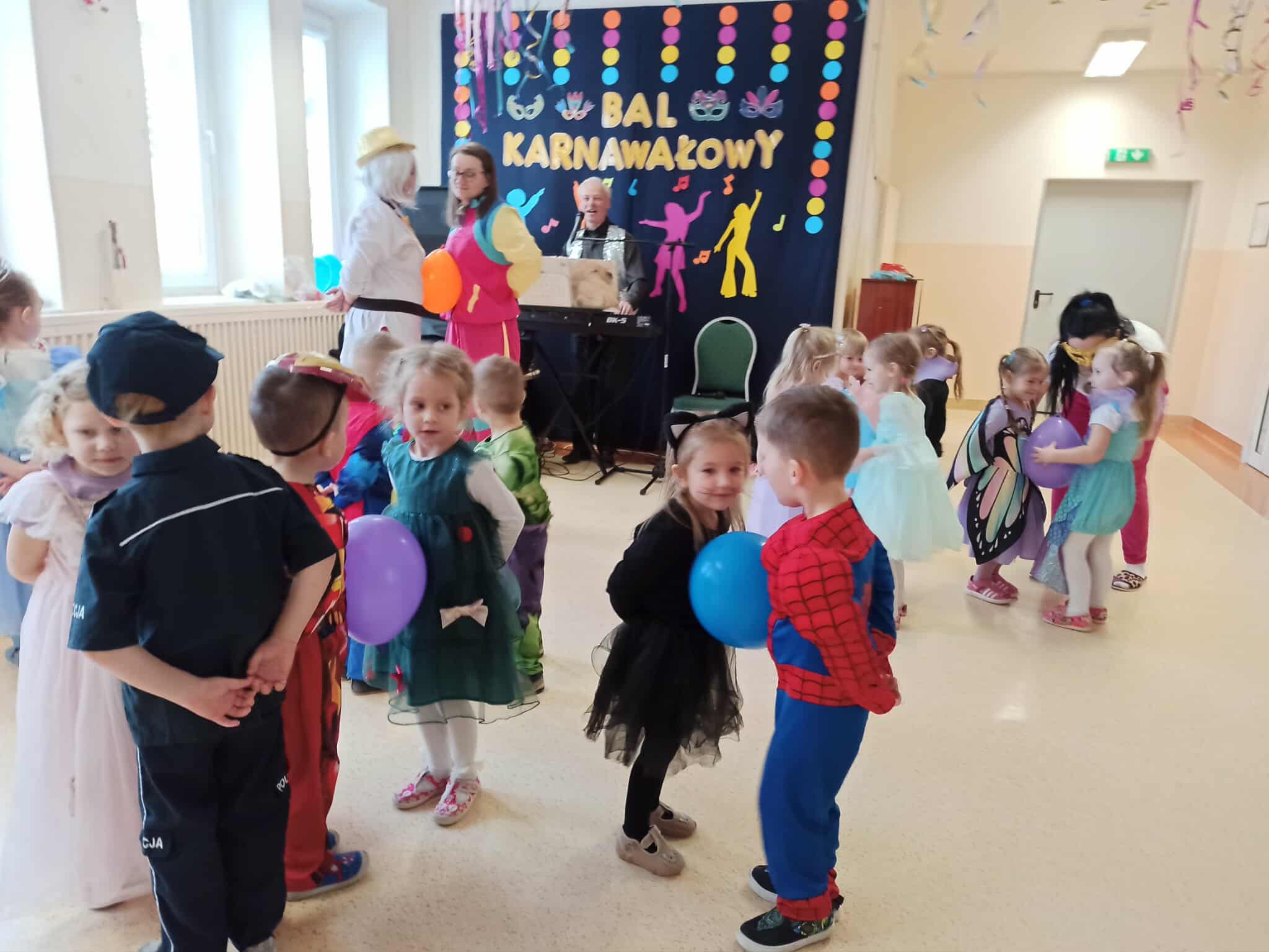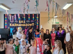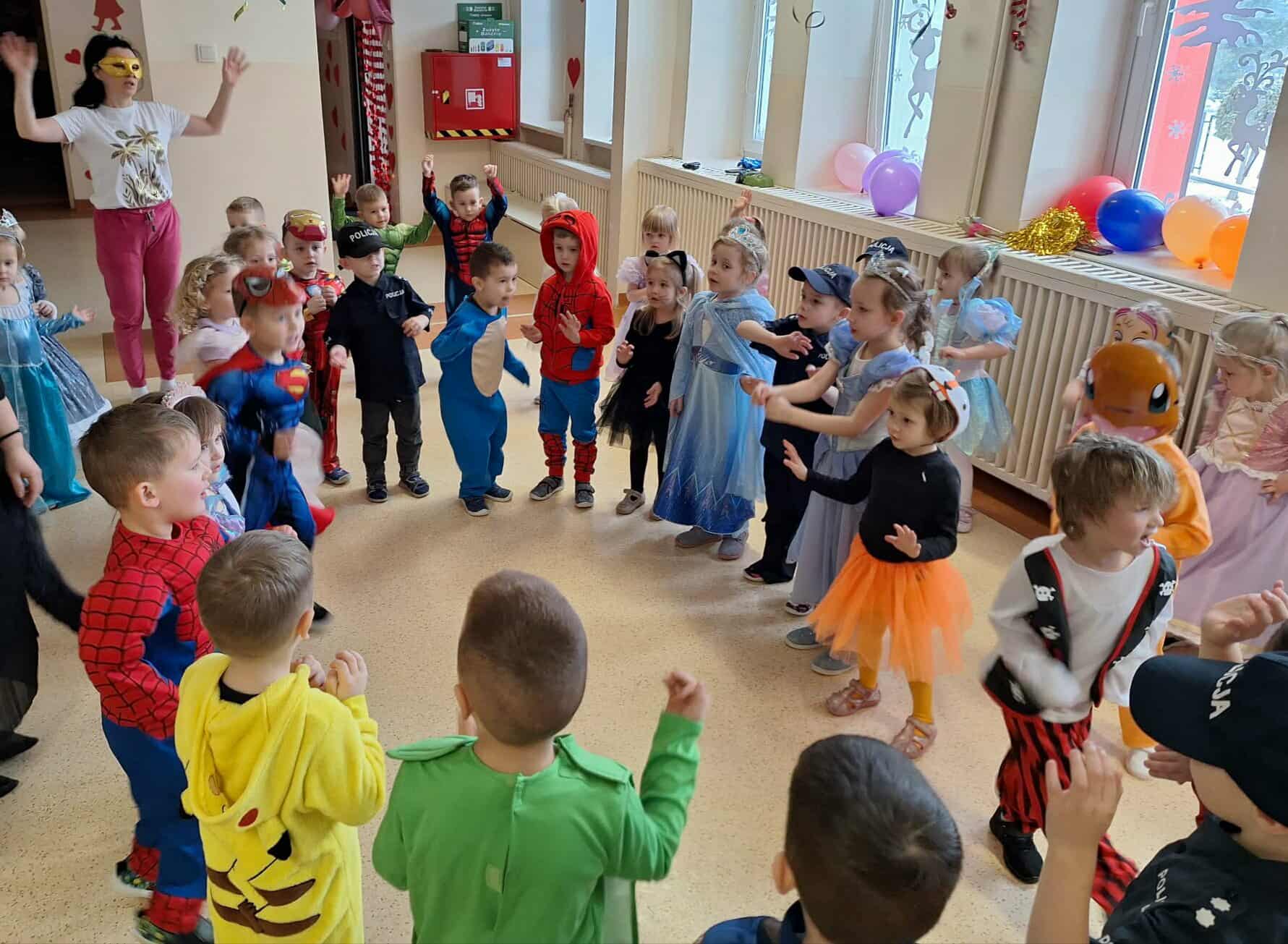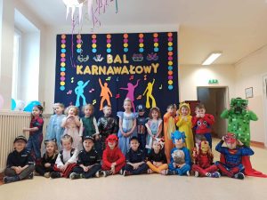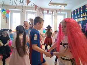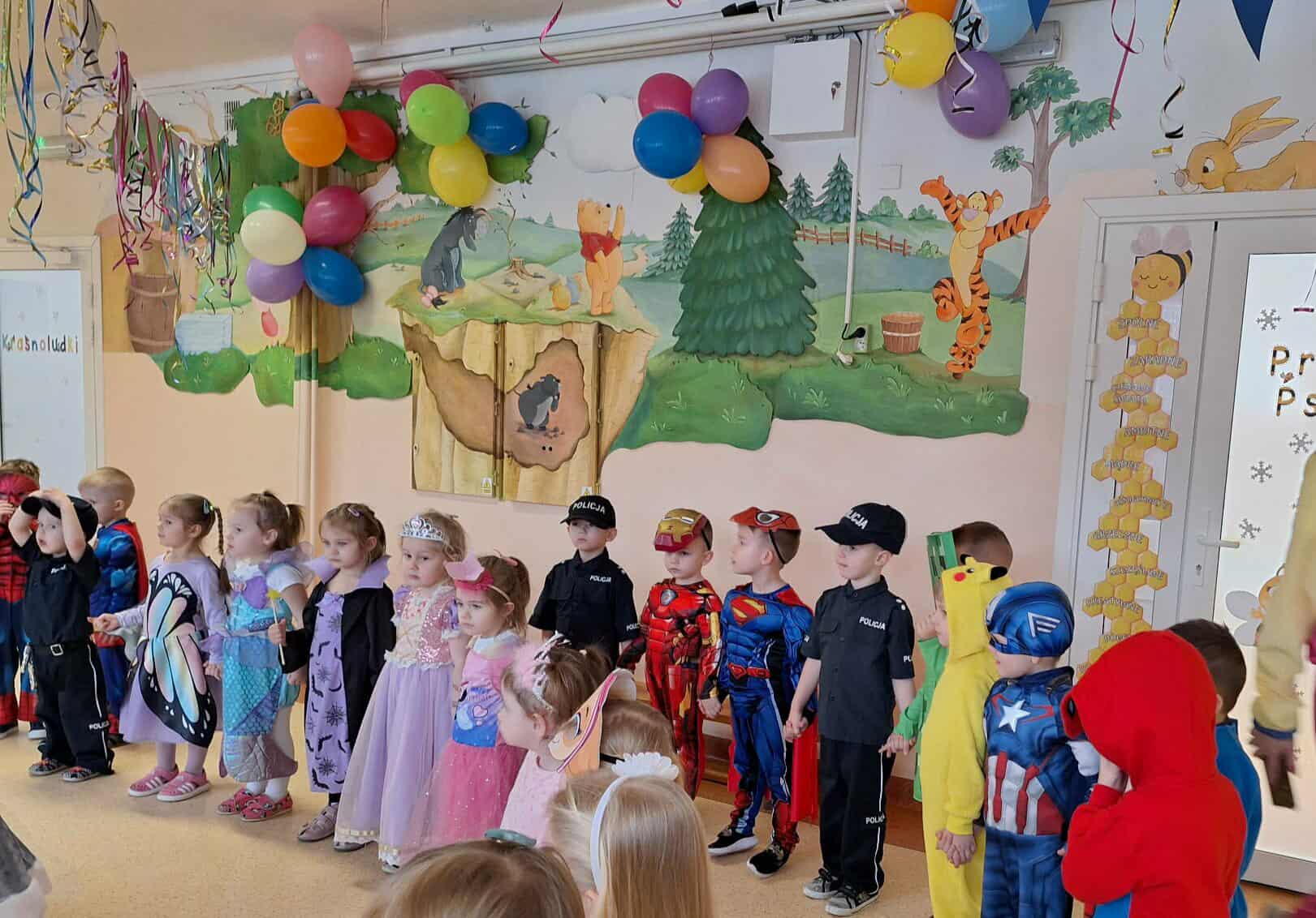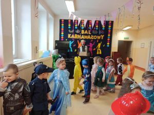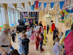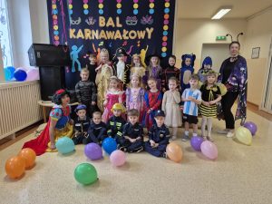 Bal karnawałowy dla przedszkolaków to dzień niezwykły, często wyczekiwany przez wiele tygodni. Jest atrakcją bardzo lubianą przez dzieci dostarczającą im wiele przeżyć i radości. W naszym przedszkolu takie wydarzenie miało miejsce 17 lutego. Tego dnia, już od rana w przedszkolu pojawiały się kolorowe postacie. Dzieci przebrane były za bohaterów znanych bajek, w salach można było spotkać wróżki, królewny, motylki, biedronki, strażaków, policjantów, sportowców, Spider-Manów, Batmanów i wiele innych postaci. Wszystkie dzieci przebrane w kolorowe stroje wspaniale bawiły się przy znanych i lubianych piosenkach. Zabawa sprzyjała integracji grup, rozwijaniu kreatywności i okazywaniu pozytywnych emocji. Dzieci miały także możliwość pozowania do zdjęć grupowych oraz indywidualnych. Po balu na dzieci czekała słodka niespodzianka. Wspólna zabawa przyniosła przedszkolakom wiele radości i uśmiechu i na długo pozostanie w ich pamięci.