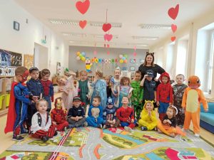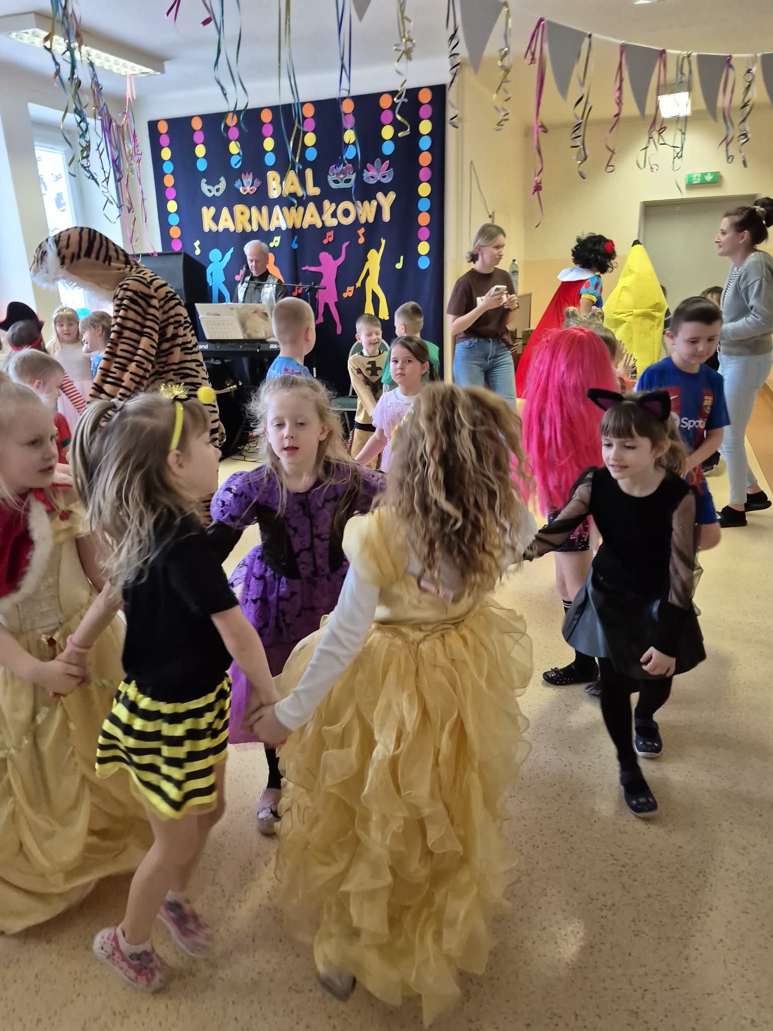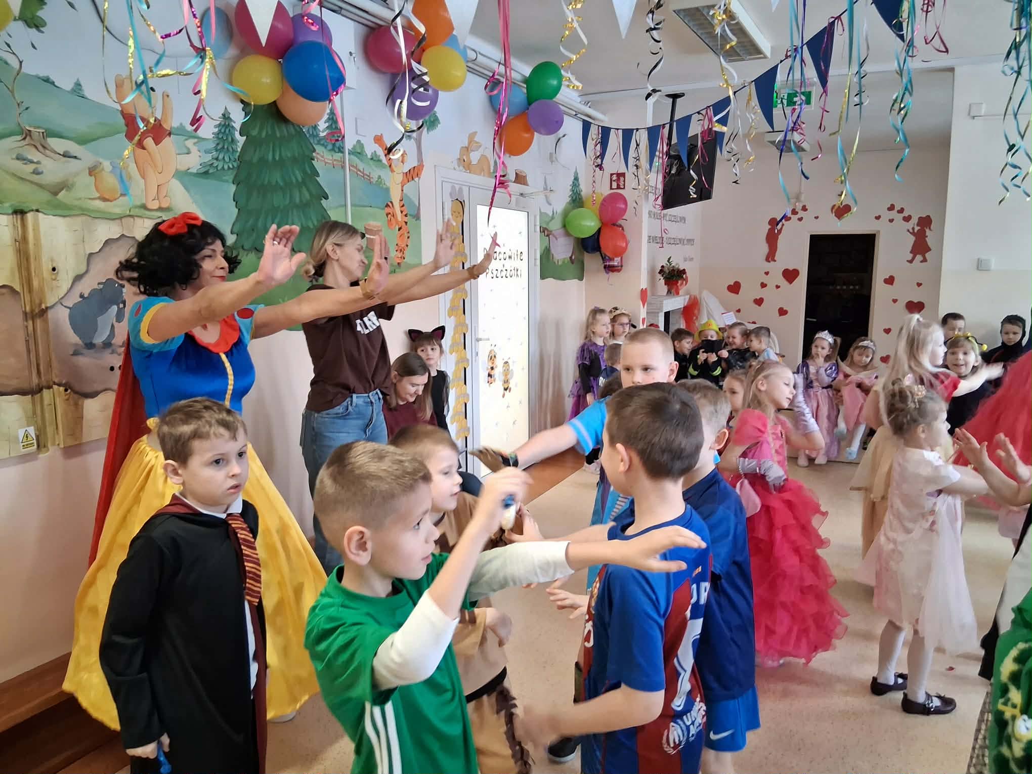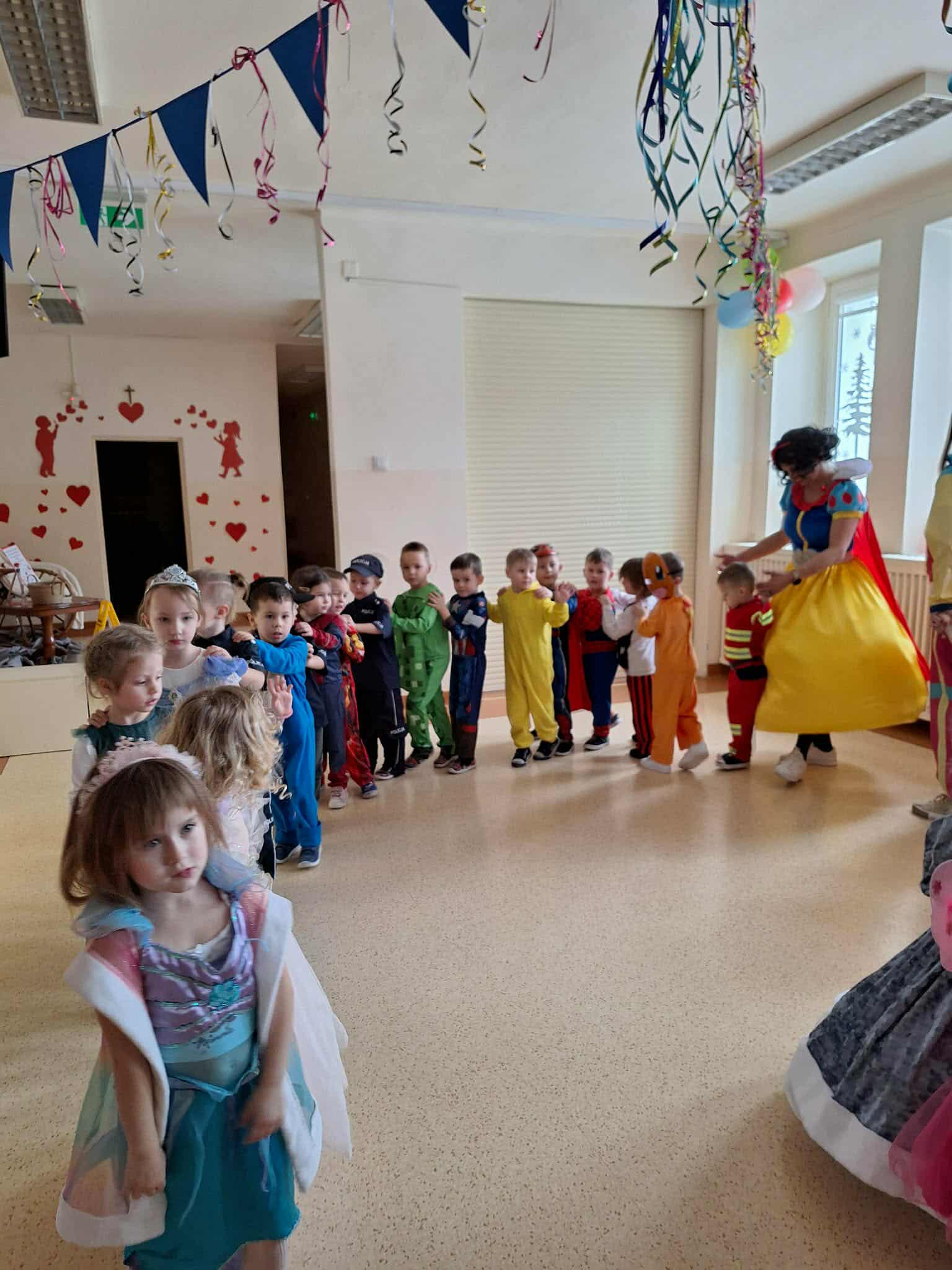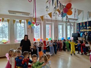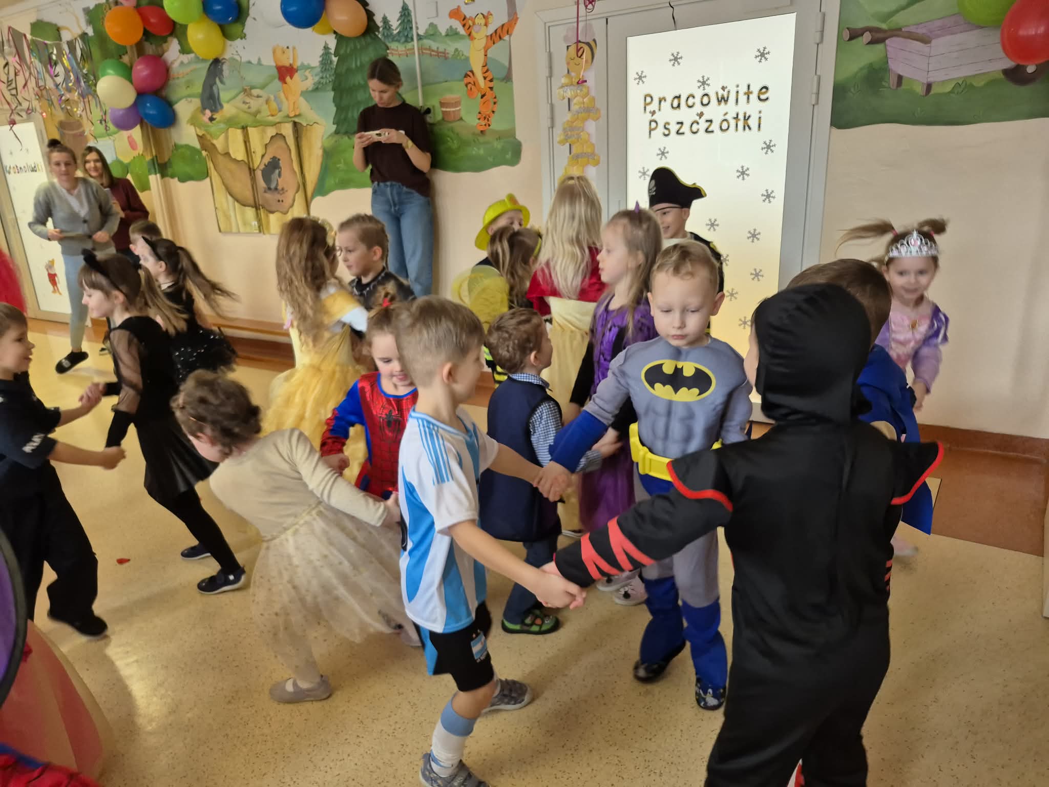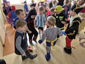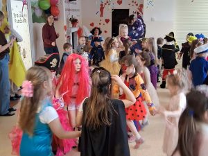 Bal karnawałowy dla przedszkolaków to dzień niezwykły, często wyczekiwany przez wiele tygodni. Jest atrakcją bardzo lubianą przez dzieci dostarczającą im wiele przeżyć i radości. W naszym przedszkolu takie wydarzenie miało miejsce 17 lutego. Tego dnia, już od rana w przedszkolu pojawiały się kolorowe postacie. Dzieci przebrane były za bohaterów znanych bajek, w salach można było spotkać wróżki, królewny, motylki, biedronki, strażaków, policjantów, sportowców, Spider-Manów, Batmanów i wiele innych postaci. Wszystkie dzieci przebrane w kolorowe stroje wspaniale bawiły się przy znanych i lubianych piosenkach. Zabawa sprzyjała integracji grup, rozwijaniu kreatywności i okazywaniu pozytywnych emocji. Dzieci miały także możliwość pozowania do zdjęć grupowych oraz indywidualnych. Po balu na dzieci czekała słodka niespodzianka. Wspólna zabawa przyniosła przedszkolakom wiele radości i uśmiechu i na długo pozostanie w ich pamięci.