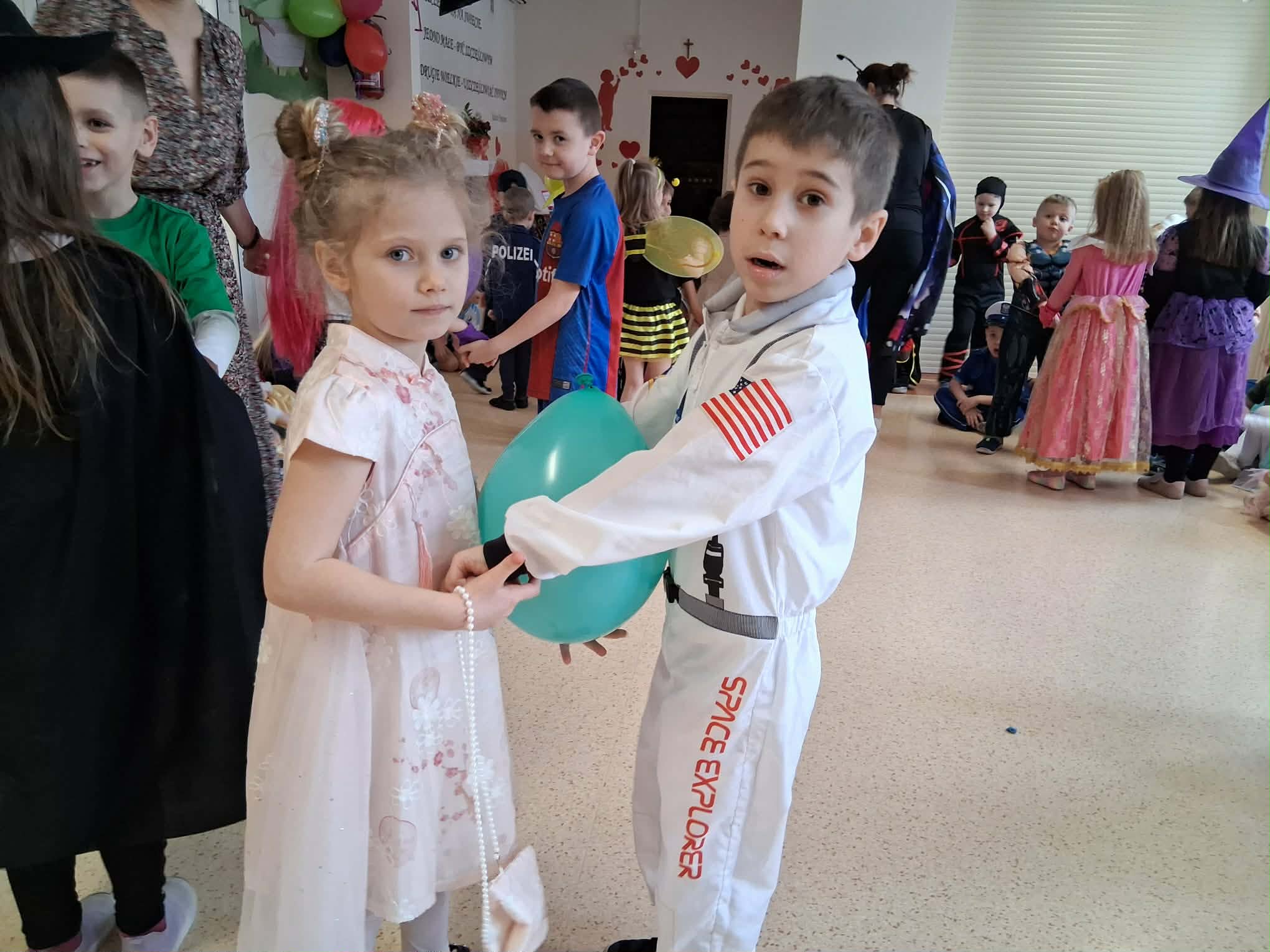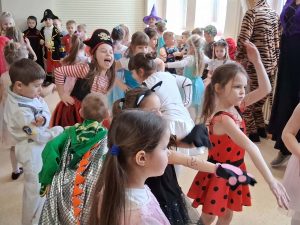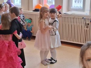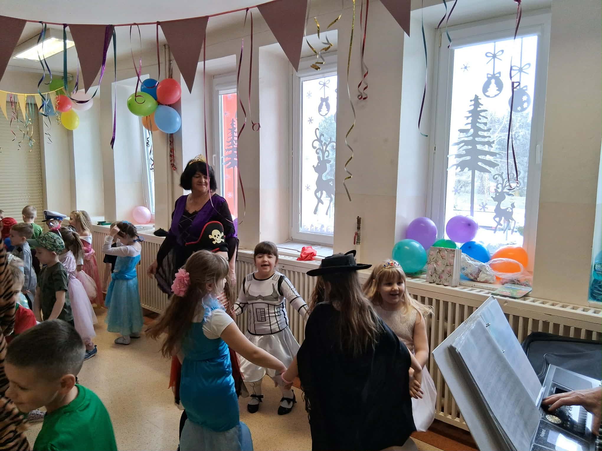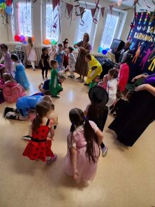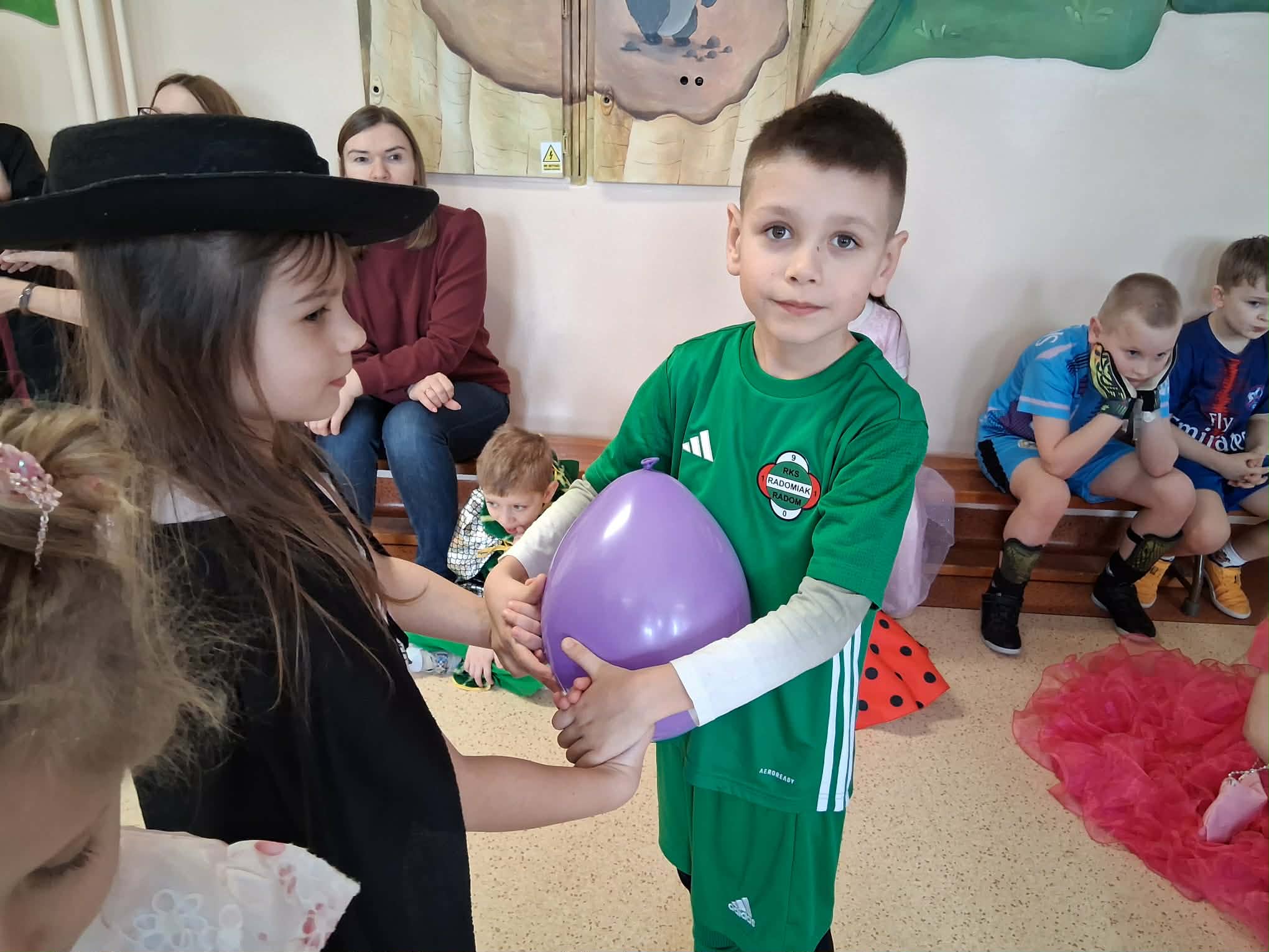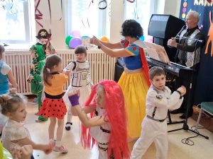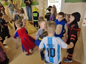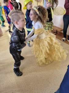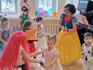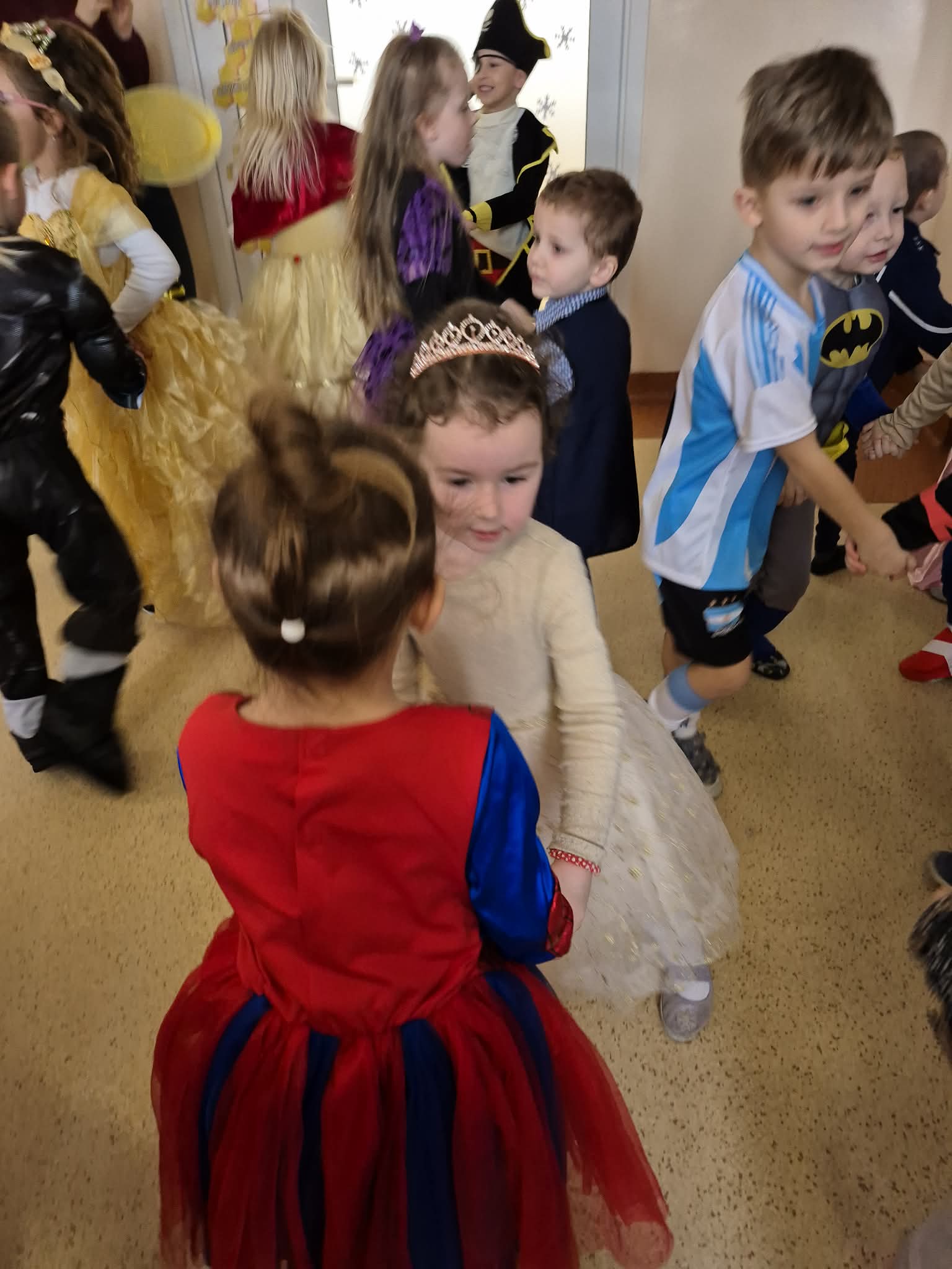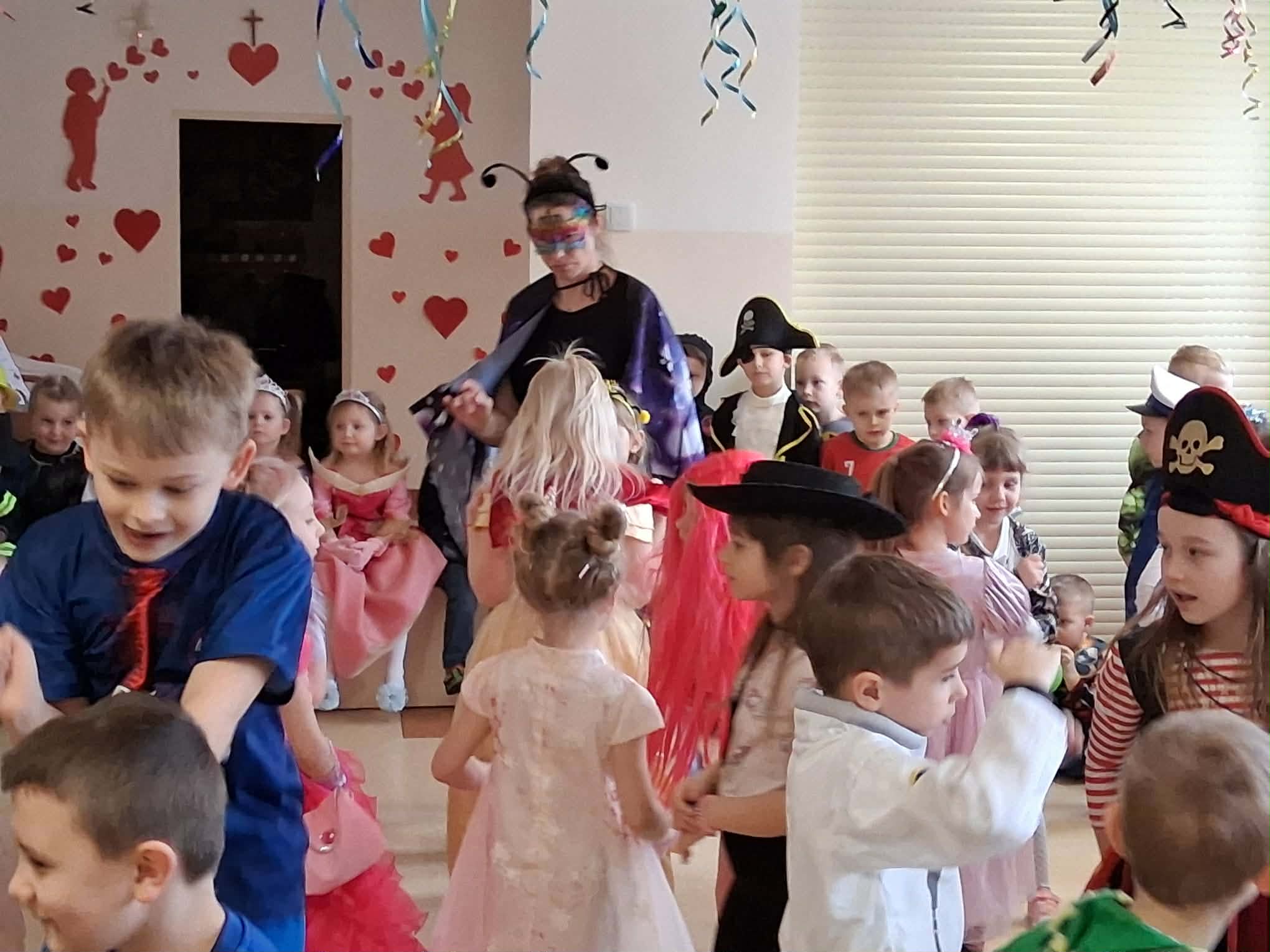 Bal karnawałowy dla przedszkolaków to dzień niezwykły, często wyczekiwany przez wiele tygodni. Jest atrakcją bardzo lubianą przez dzieci dostarczającą im wiele przeżyć i radości. W naszym przedszkolu takie wydarzenie miało miejsce 17 lutego. Tego dnia, już od rana w przedszkolu pojawiały się kolorowe postacie. Dzieci przebrane były za bohaterów znanych bajek, w salach można było spotkać wróżki, królewny, motylki, biedronki, strażaków, policjantów, sportowców, Spider-Manów, Batmanów i wiele innych postaci. Wszystkie dzieci przebrane w kolorowe stroje wspaniale bawiły się przy znanych i lubianych piosenkach. Zabawa sprzyjała integracji grup, rozwijaniu kreatywności i okazywaniu pozytywnych emocji. Dzieci miały także możliwość pozowania do zdjęć grupowych oraz indywidualnych. Po balu na dzieci czekała słodka niespodzianka. Wspólna zabawa przyniosła przedszkolakom wiele radości i uśmiechu i na długo pozostanie w ich pamięci.
